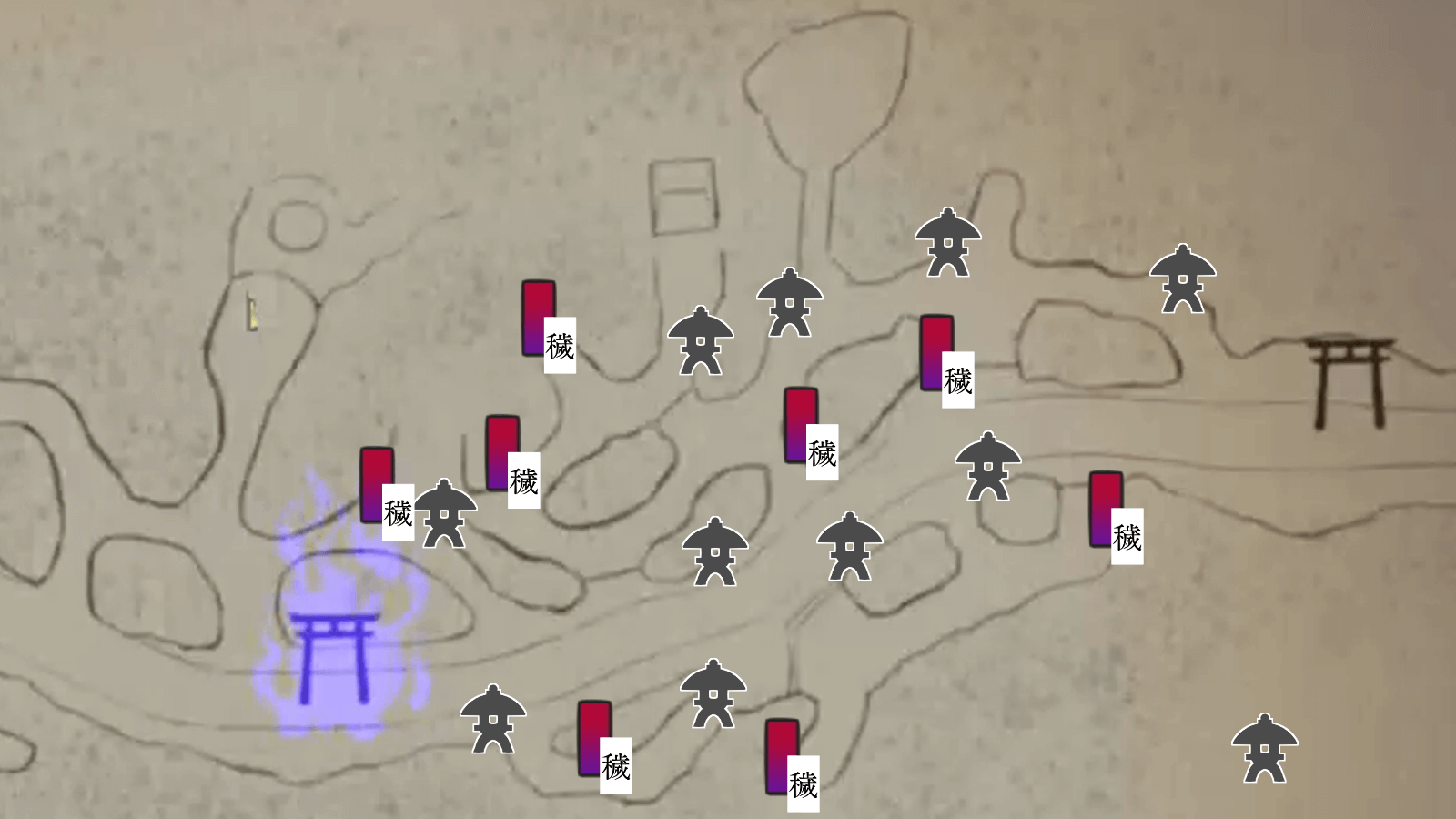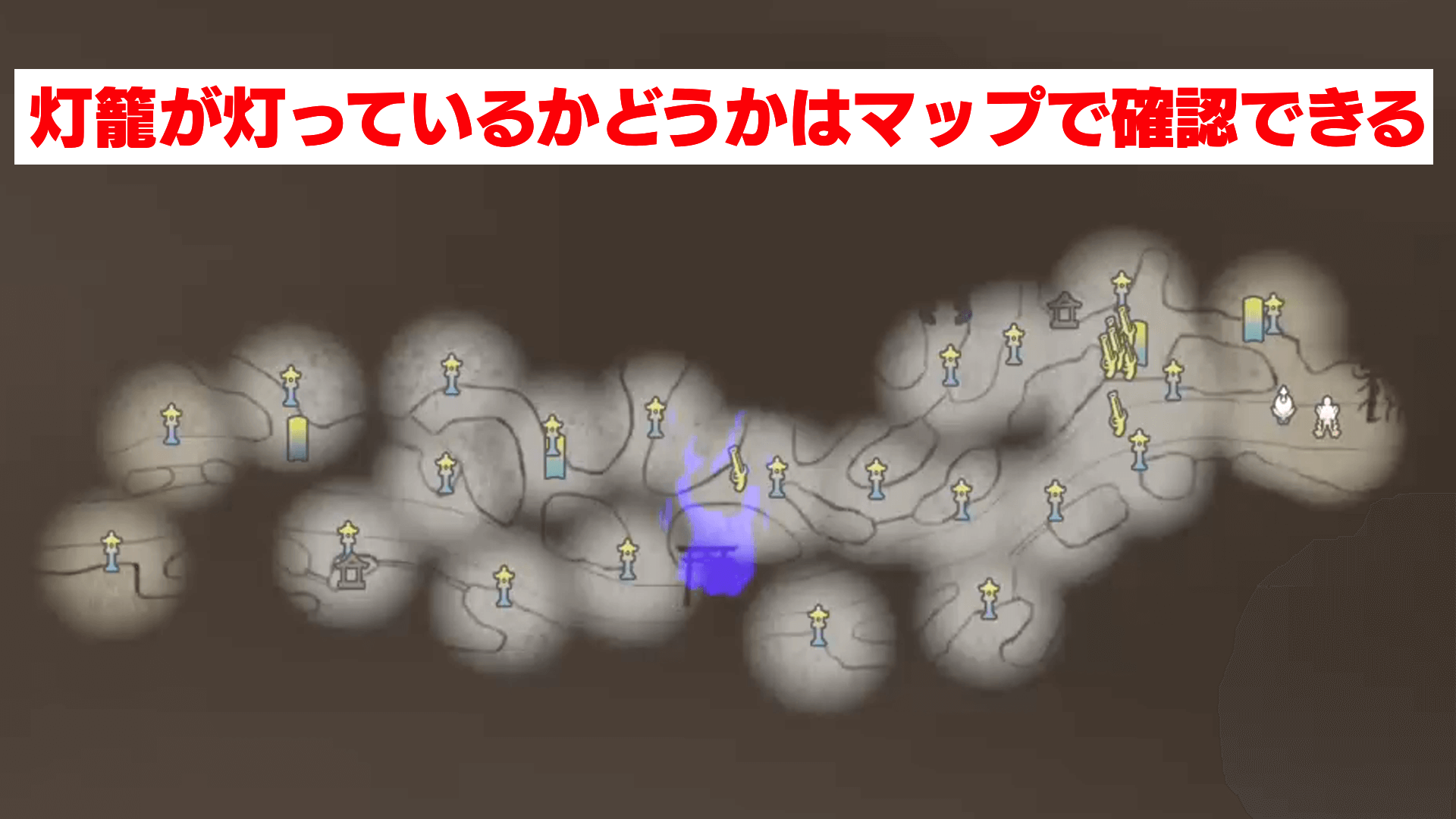 鳴沢大風穴は暗いマップのため、出現した畏哭をマップで確認できるように灯籠を灯しておこう。また、村人は灯りで照らされた畏哭しか攻撃できないので、灯籠を灯しておかないと攻撃出来ずに畏哭が世代に近付いてきてしまう。