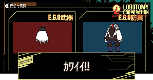 Lobotomy Corporation(ロボトミーコーポレーション)のE.G.O「カワイイ!!」の性能を紹介。キュートちゃんから手に入るE.G.Oギフトも掲載しているので、Lobotomy CorporationでE.G.O「カワイイ!!」の性能を知りたい方はどうぞ。