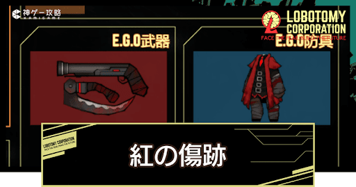 Lobotomy Corporation(ロボトミーコーポレーション)のE.G.O「紅の傷跡」の性能を紹介。赤ずきんの傭兵から手に入るE.G.Oギフトも掲載しているので、Lobotomy CorporationでE.G.O「紅の傷跡」の性能を知りたい方はどうぞ。