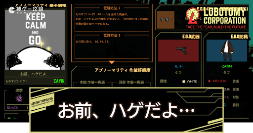 Lobotomy Corporation(ロボトミーコーポレーション)の「お前、ハゲだよ…(ものすごいハゲ!)」の管理方法を紹介。「お前、ハゲだよ…」の特殊能力や抽出E.G.Oも掲載しているので、Lobotomy Corporationで「お前、ハゲだよ…」を管理するコツを知りたい方はどうぞ。