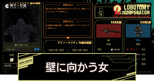 Lobotomy Corporation(ロボトミーコーポレーション)の「壁に向かう女(F-01-18)」の管理方法を紹介。「壁に向かう女」の特殊能力や抽出E.G.Oも掲載しているので、Lobotomy Corporationで「壁に向かう女」を管理するコツを知りたい方はどうぞ。