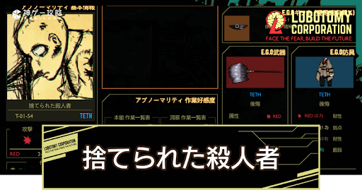 Lobotomy Corporation(ロボトミーコーポレーション)の「捨てられた殺人者(T-01-54)」の管理方法を紹介。「捨てられた殺人者」の特殊能力や抽出E.G.Oも掲載しているので、Lobotomy Corporationで「捨てられた殺人者」を管理するコツを知りたい方はどうぞ。