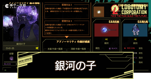【ロボトミーコーポレーション】銀河の子(O-01-55)の管理方法