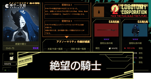 【ロボトミーコーポレーション】絶望の騎士(O-01-73)の管理方法