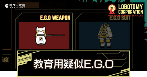 Lobotomy Corporation(ロボトミーコーポレーション)のE.G.O「教育用疑似E.G.O」の性能を紹介。教育用ウサギロボから手に入るE.G.Oギフトも掲載しているので、Lobotomy CorporationでE.G.O「教育用疑似E.G.O」の性能を知りたい方はどうぞ。