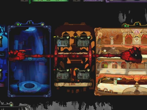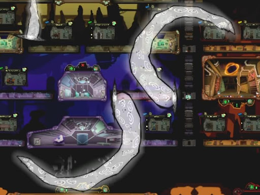 | 赤/白/紫の「作られた神」は施設のランダムな場所を触手で攻撃ダメージはそれぞれの石板の色に対応している |