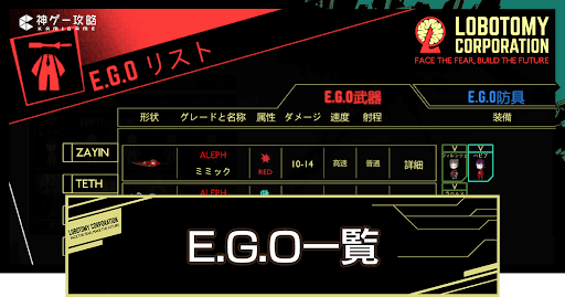 | E.G.O武器 | E.G.O防具 | E.G.Oギフト |