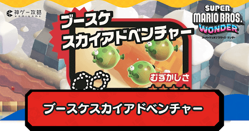 マリオワンダー(スーパーマリオブラザーズワンダー)の「ブースケスカイアドベンチャー」について紹介。ステージの収集アイテムの場所や入手方法、攻略のポイント、攻略動画についても掲載しているため、マリオワンダーをプレイする際の参考にどうぞ。
