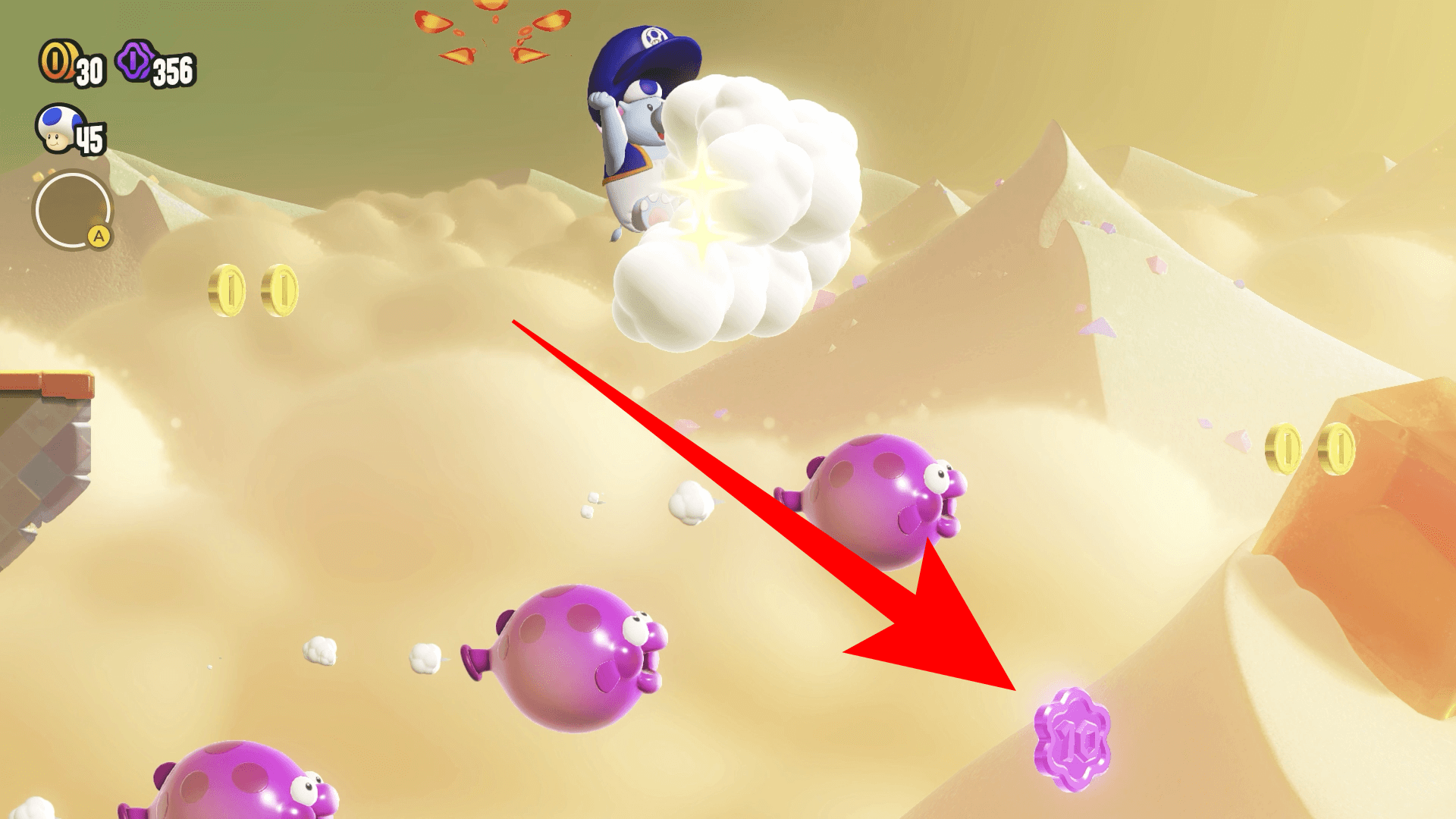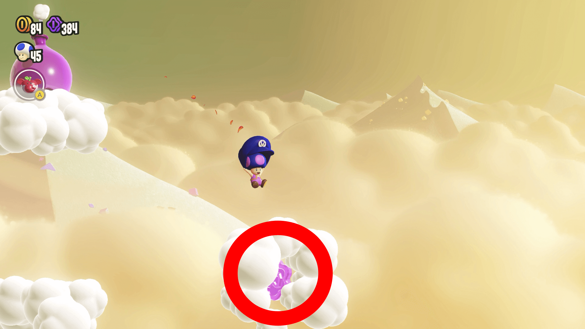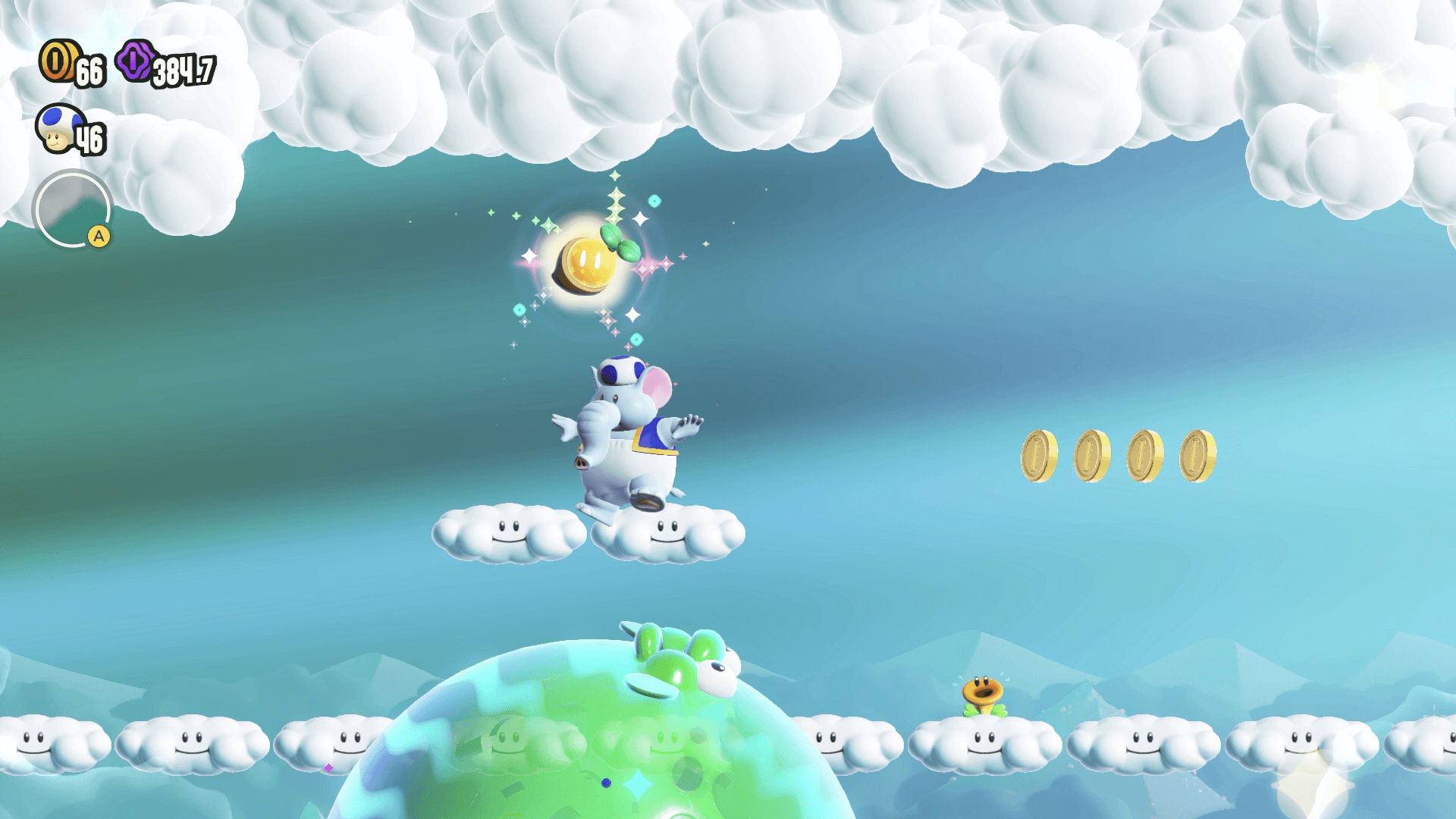 雲の中にあるフラワーを取り、ギミックを起動させよう。ギミック中の途中にワンダーフラワーがある。