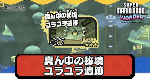 マリオワンダー(スーパーマリオブラザーズワンダー)の「真ん中の秘境ユラユラ遺跡」について紹介。ステージの収集アイテムの場所や入手方法、攻略のポイントについても掲載しているため、マリオワンダーをプレイする際の参考にどうぞ。