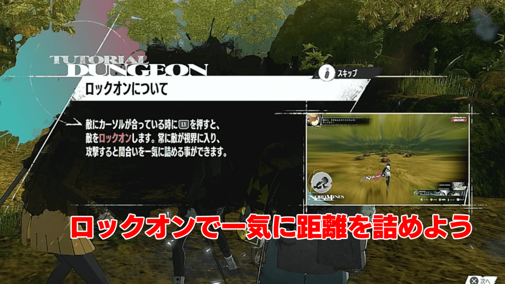 | ロックオンで距離を詰めるロック中は攻撃時に自動で接近する |