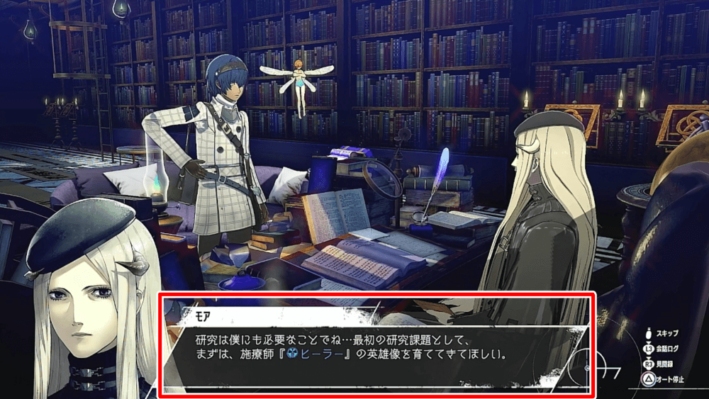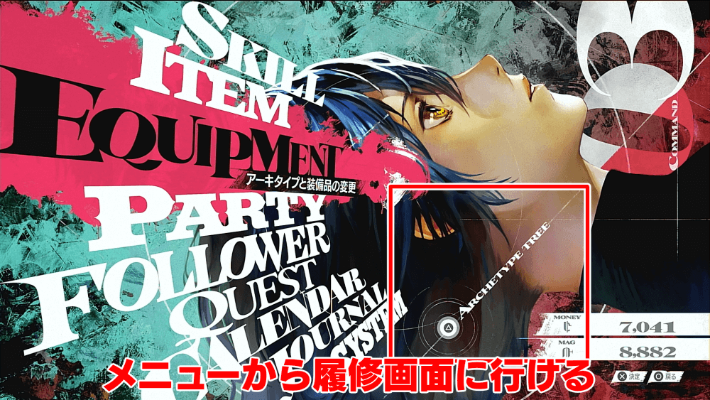 モアの支援ランクが上がり「連関の魔道器」を受け取ると、メニューから「△」ボタンでアーキタイプの履修画面に行けるようになる。アカデメイアに行かない分時短になるうえ、ダンジョン内で急遽新たなアーキタイプに変えたくなった際にも便利だ。