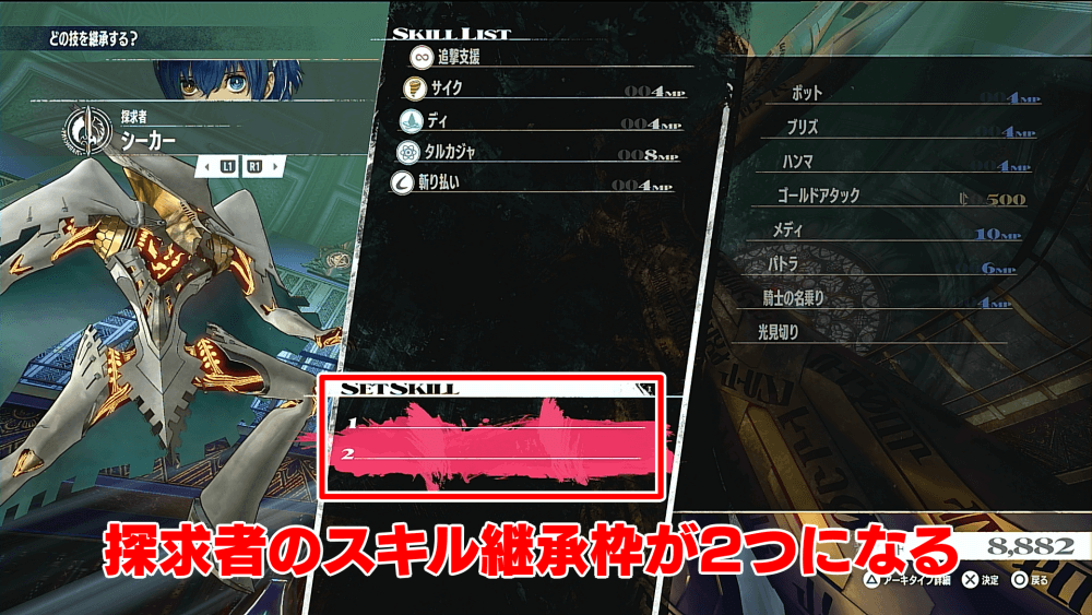 「シーカー」など探求者に属するアーキタイプの、スキル継承枠が2つになる。パッシブスキルを継承したり、複数属性の技を継承すれば更に幅広く活躍できる。