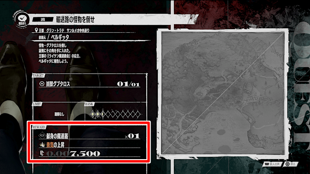 | 受注条件 | 失われた遺物を探せ 苦い記憶クリア後 |