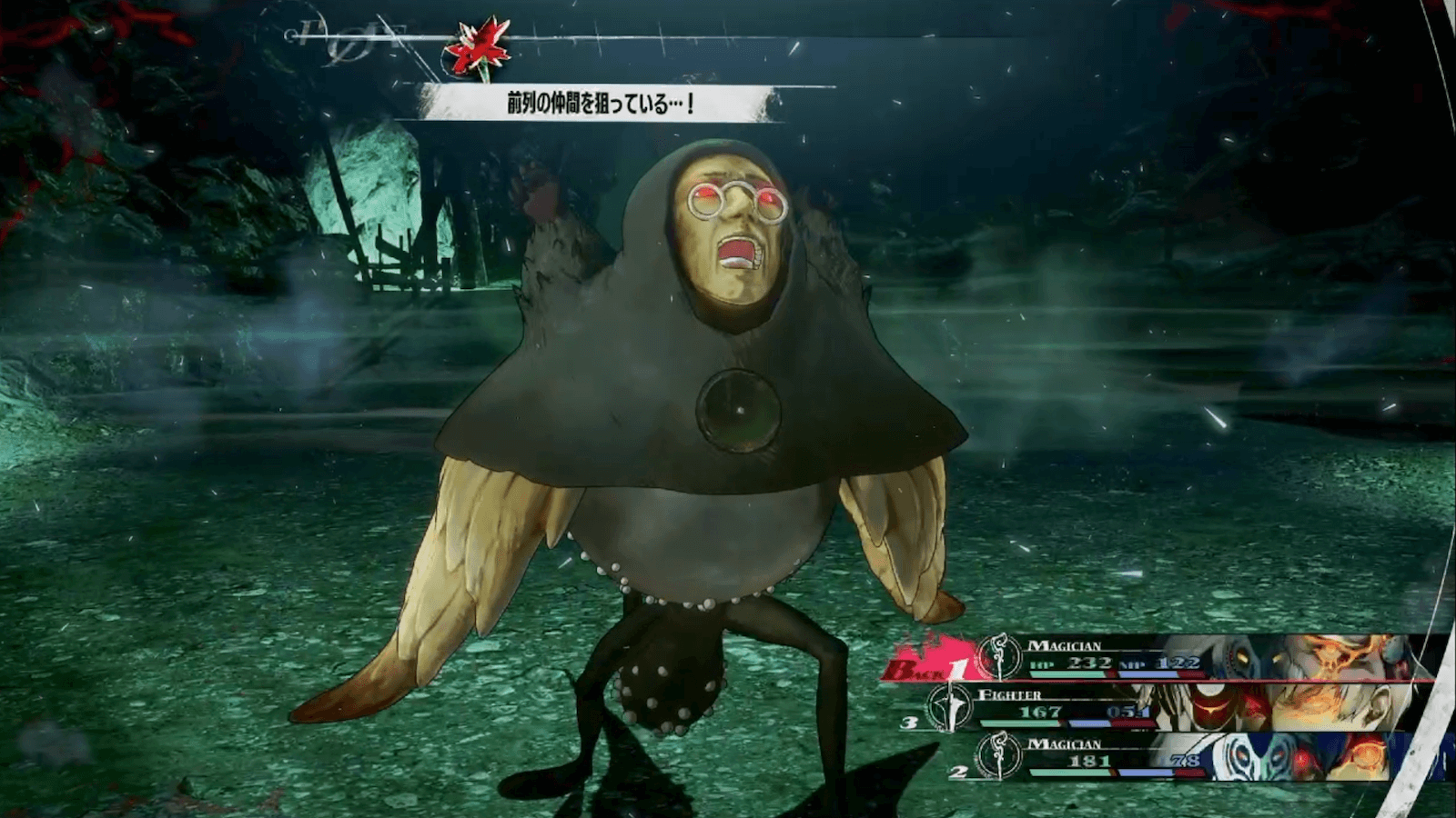 ホモ・フルキロは氷属性が弱点であり、マジシャンが習得する「ブリズ」を使うことで有利に立ち回れる。3人中2人がマジシャンであれば、1ターンに最大6回まで行動可能だ。