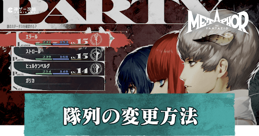 メタファー:リファンタジオの隊列について解説。隊列の変更方法や保存方法、隊列を変更した際のメリット、デメリットについても掲載しています。メタファーで隊列を切り替える際の参考にどうぞ。