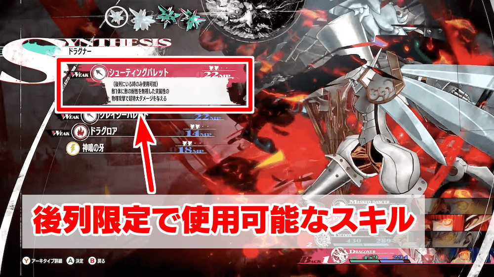 スキルの中には自分が指定列にいないと使えなかったり、指定列全てに効果を与えるものがある。代わりに消費MP効率で優れたり、効果量が高いといった恩恵があるため、アーキタイプに合わせた隊列を考えよう。