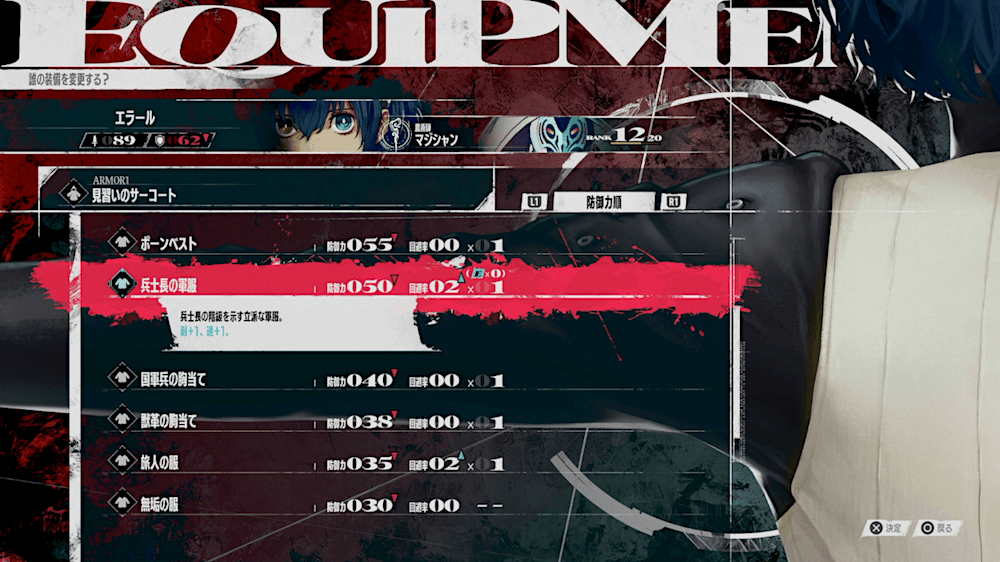 基礎回避率は防具によって決まるため、回避率の高い防具を優先して装備しよう。回避の高い装備は全体的に防御力が低くなる傾向にあるため、敵の攻撃が耐えられないようなら、回避を諦めることも考えよう。