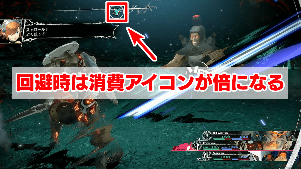回避に成功した場合、相手のアイコンが2倍消費される。行動回数を大きく減らせる上、全体攻撃は誰か1人が回避すれば2倍消費が優先されるため、1人は回避特化で組むのがおすすめだ。