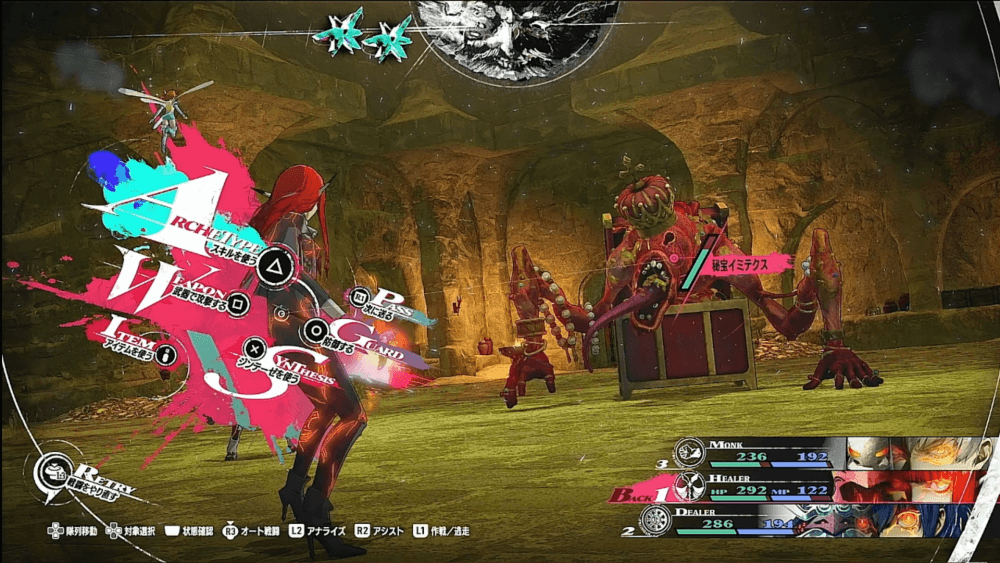 | 宝箱型の敵にゴールドアタックが有効 |