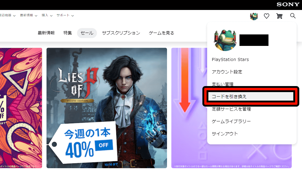 | 2 | 画面右上のアイコンからコード引き換えを選択 |