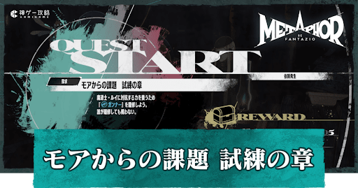 メタファー:リファンタジオの依頼「モアからの課題 試練の章」の攻略情報を掲載。受注場所や発生タイミング、報酬などについて掲載しているので、メタファーをプレイする際の参考にどうぞ。