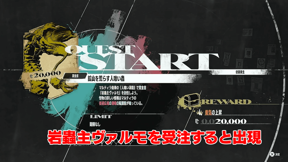 | 17 | マップ北西でボス「岩蟲主ヴァルモ」を撃破 |