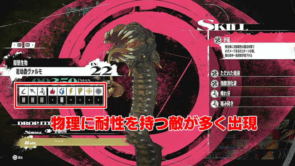 | 岩蟲主ヴァルモ | 耐 | 耐 | 耐 | 無 | 弱 | - | - | - | - |