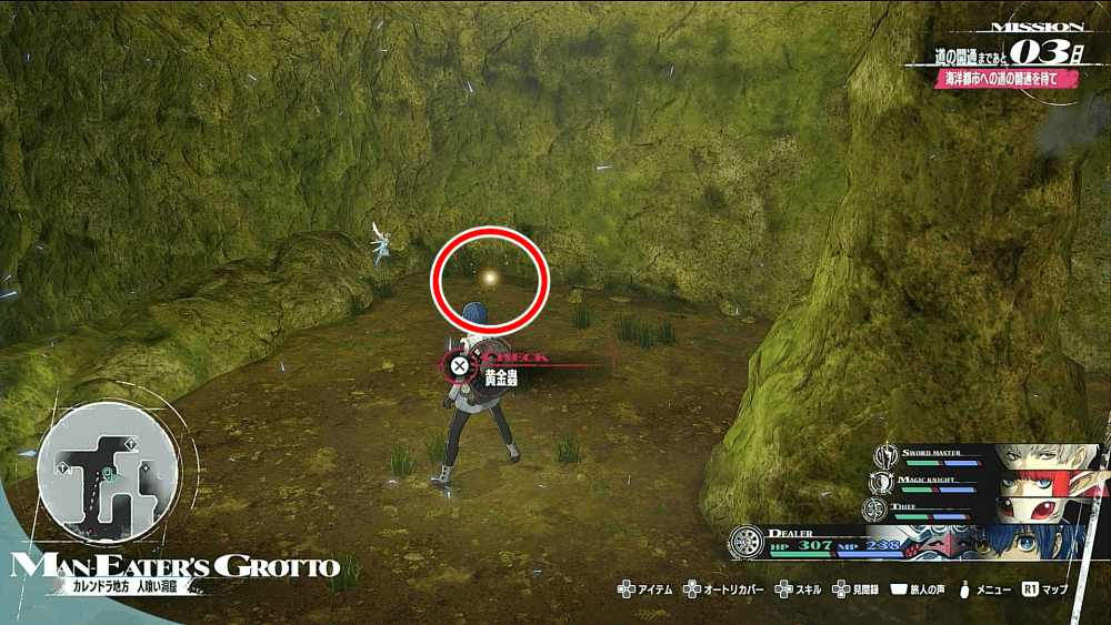 依頼アイテム以外の重要なアイテムとして、黄金蟲が1匹入手できるため、忘れずに拾っておこう。人喰い洞窟の黄金蟲は、マップ最下層の北部で回収できる。