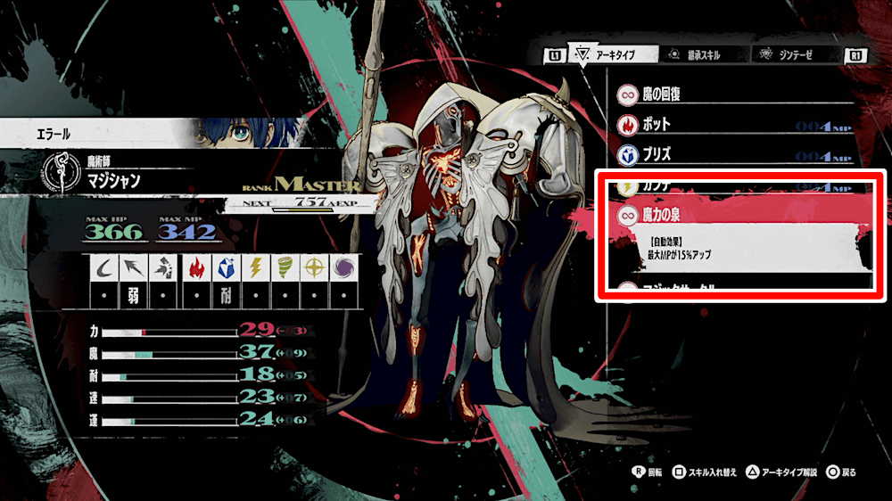 | 最大MPの増えるスキルを取得する魔術師系のアーキタイプで習得可能 |