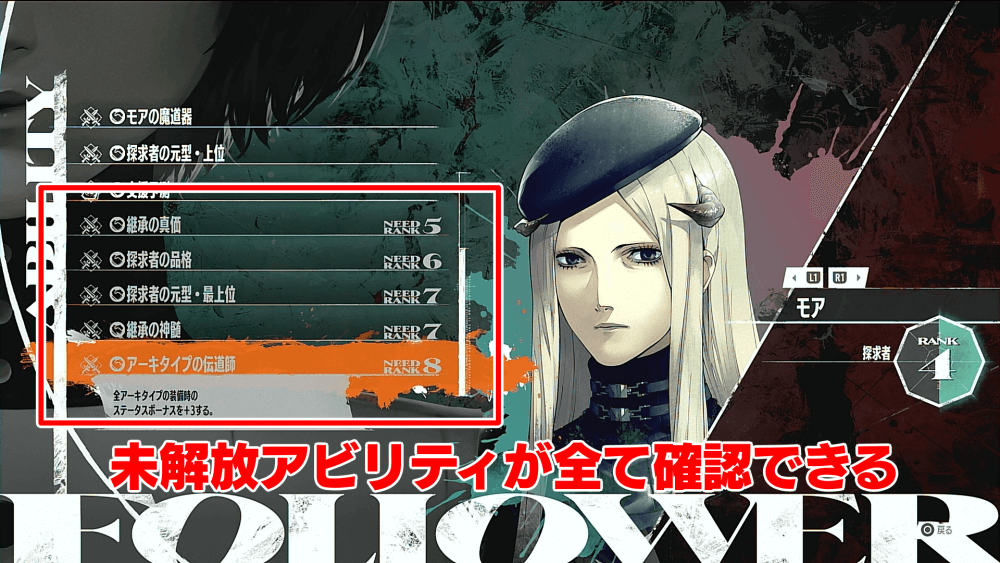 モアのランク4達成の特典「支援予測」は、支援者の今後のアビリティを全て確認できる効果だ。誰からランクを上げるか迷った際に、支援予測でアビリティを見比べて優先順位をつけると良い。