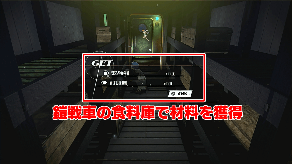 各材料は鎧戦車の食料庫から手に入る場合もある