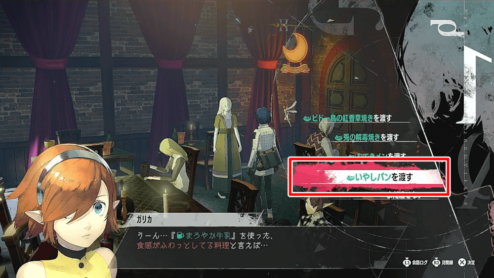 作成した「いやしパン」を依頼主に渡すと、依頼達成となり報酬を受け取れる。依頼主に渡した「いやしパン」は無くなってしまうので、手元に持っておきたい場合は料理の時に複数個まとめて作っておこう。