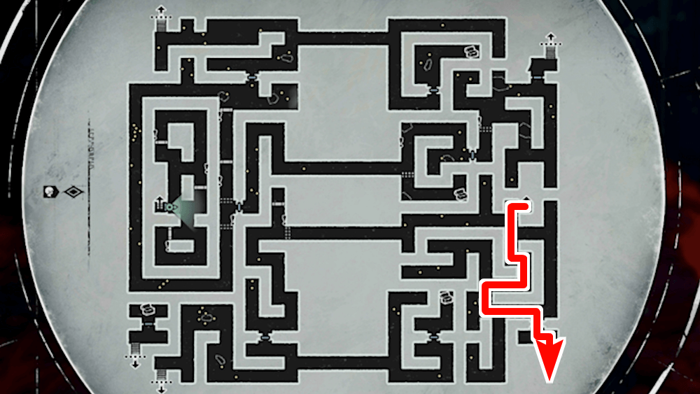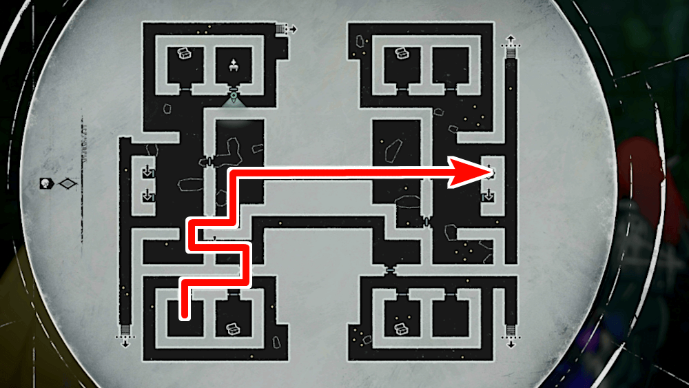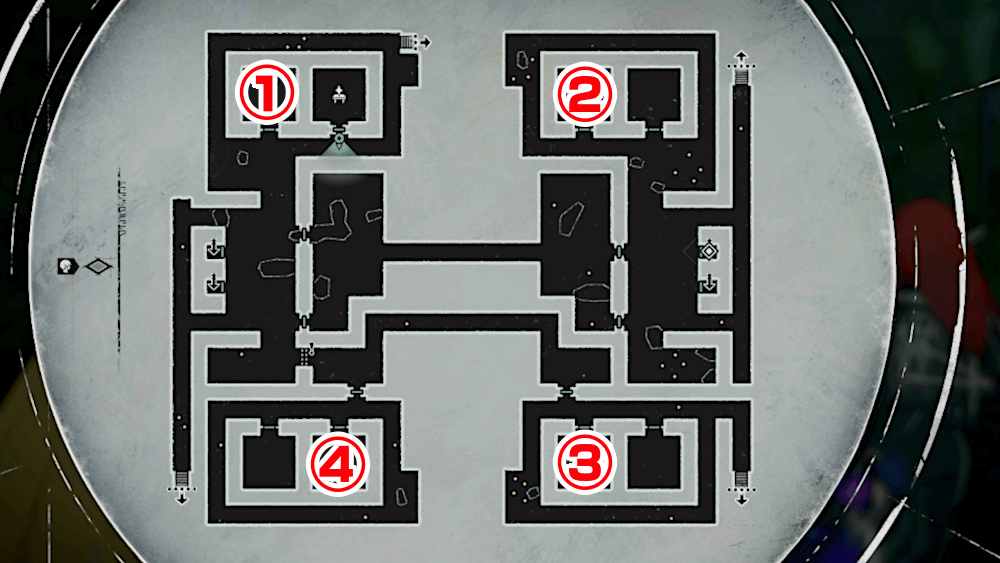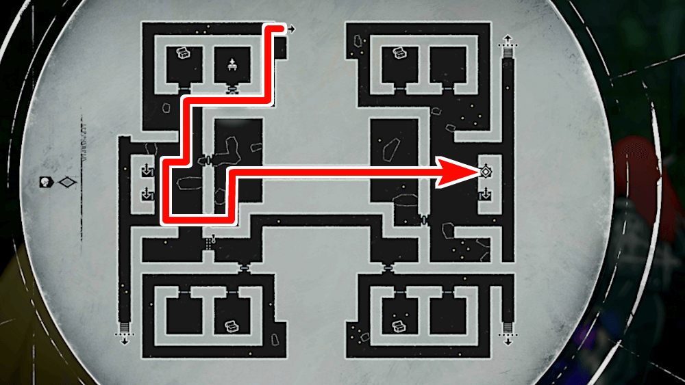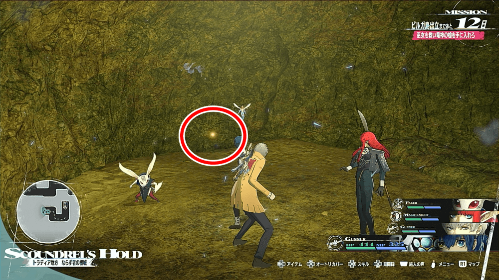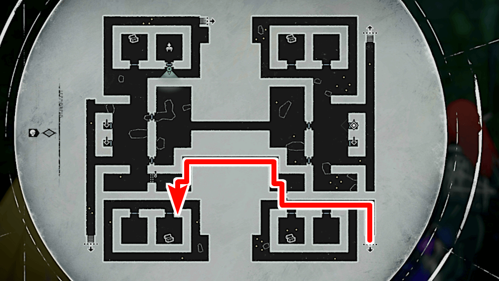 最下層に着いたら南側を通って、エリア中央に向かおう。エリアの四隅には宝箱が置いてあるため、余裕があれば寄り道して回収しておくのがおすすめだ。