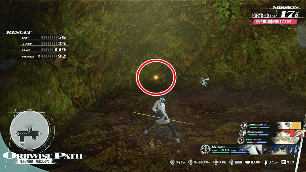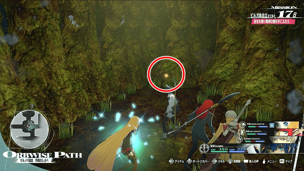 迷路を抜けたらユーファと合流し、道なりに奥へと進もう。道中には体力の香が落ちているため、光るアイテムを拾いながら進むと良い。