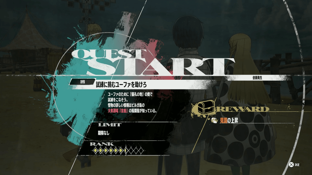 | 謎の魔道器の鑑定を代行しろ | 【開始地点】 8月19日以降 ビルガ島「異教の里」【報酬】 ・全能の結晶×1 ・見識の上昇×4 ・リーブ×15,000 |