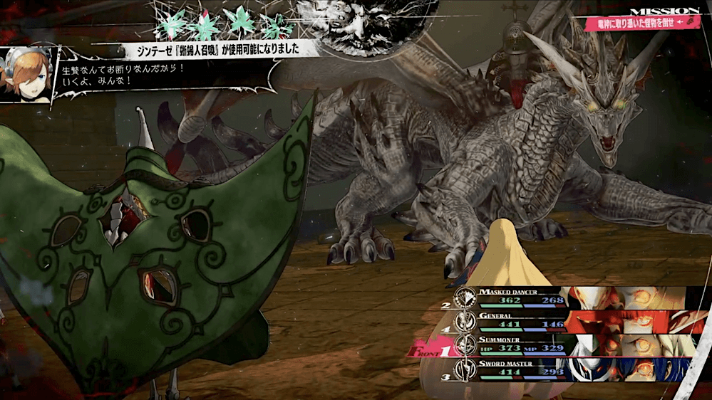 エネミー 斬 突 壊 炎 氷 電 風 光 闇 邪竜エト - - - - - - - 耐 無 ホモ・マルゴ 耐 耐 耐 - - - 弱 - 耐 最奥に着くと、ボスの邪竜エト&ホモ・マルゴと戦闘。ホモ・マルゴは風弱点を持ち、マジックシーカーやサマナーで弱点が突ける。ホモ・マルゴ撃破後は敵全体の行動が非常に少なくなるため、最優先でマルゴを倒し、後から邪竜エトを倒すのがおすすめだ。
