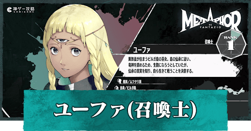 メタファー:リファンタジオのキャラクター「ユーファ(召喚士)」について解説。ユーファやアーキタイプの性能、好感度上げのおすすめ選択肢とMAG獲得量、支援ランクの効果ついてもまとめ、プロフィールについても掲載。メタファー(アトラス)をプレイする際の参考にどうぞ。