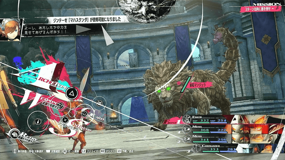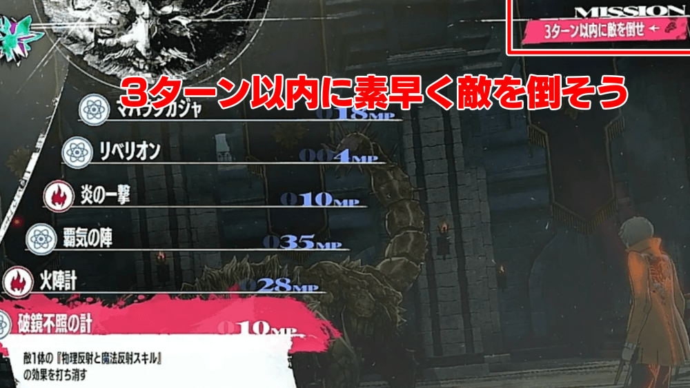 ボスの岩石マンジュラを、3ターン以内に撃破しよう。「壊」属性が弱点なので、格闘家のアーキタイプを中心に攻めるのがおすすめ。