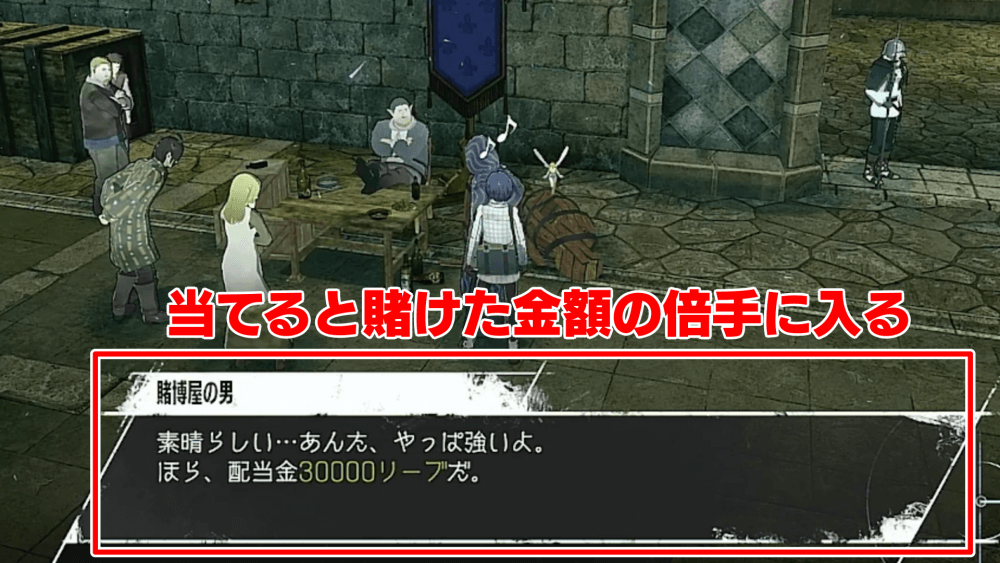賭博屋では、指定期間内に主人公の支持順位がどこまで上がるかを予想して賭けられる。当たると賭け金の倍のリーブが得られ、手軽に稼げるチャンスなので参加しておくと良い。