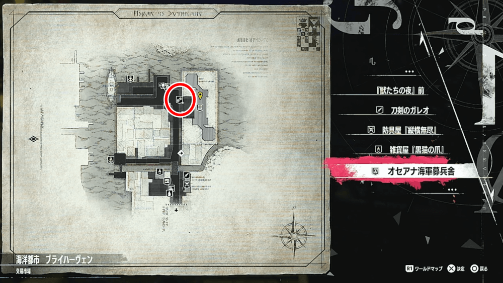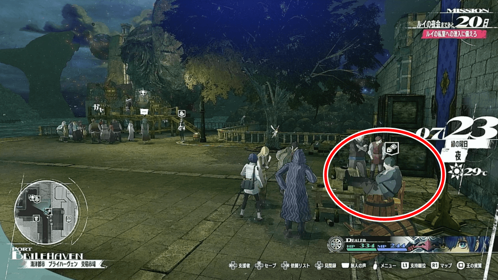 夜の「海洋都市 ブライハーヴェン」の募兵舎の前にいる、「賭博屋の男」に話しかけると賭けに参加できる。ただし、雷雨の夜には出現しないため、参加したい場合は晴れか曇りの日の夜に見に来よう。