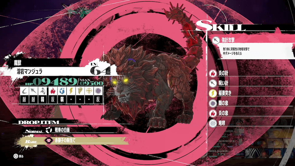 | 溶岩マンジュラ | 耐 | 耐 | 弱 | 反 | 弱 | - | - | - | 反 |