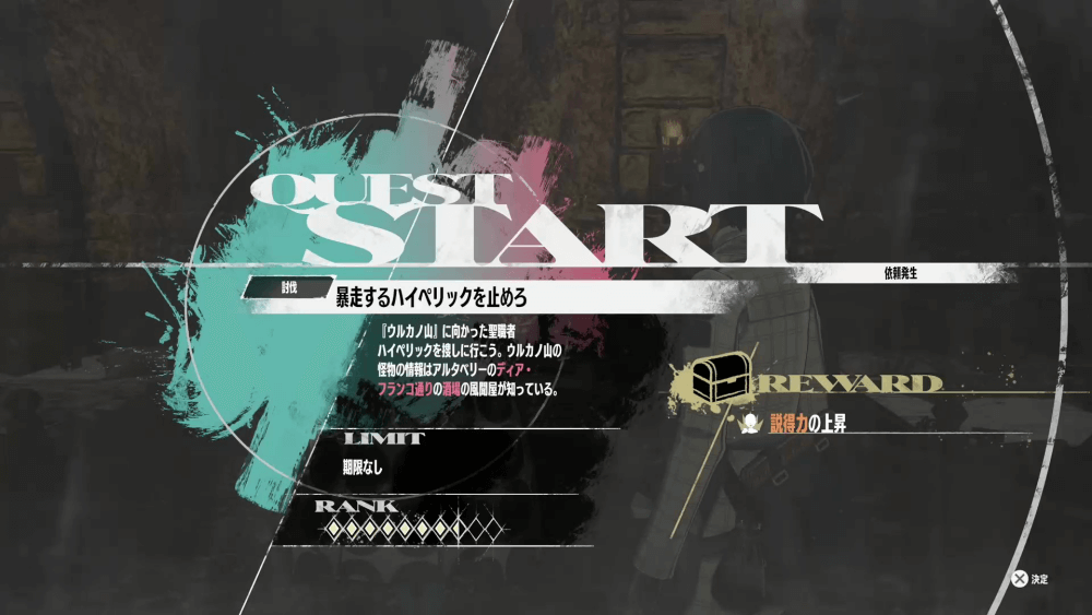| 依頼「伝説の武器を探せ」を受注する |