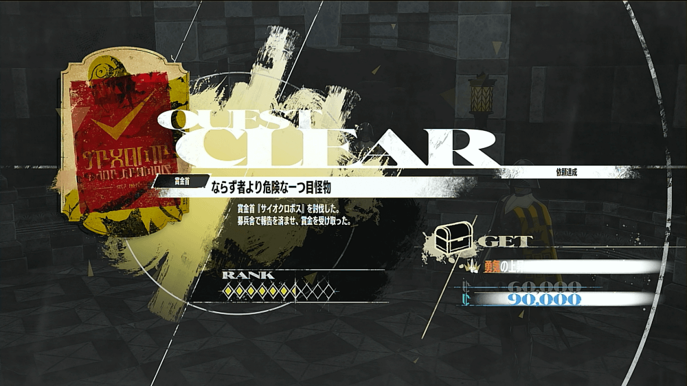 サイオクロポスを撃破したら、募兵舎に戻って報告しよう。勇気の資質ポイントと、リーブを受け取って依頼達成となる。