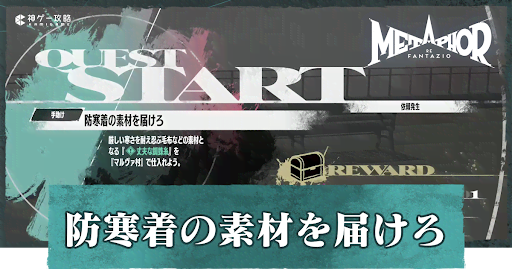 【メタファー】防寒着の素材を届けろの受注場所と攻略