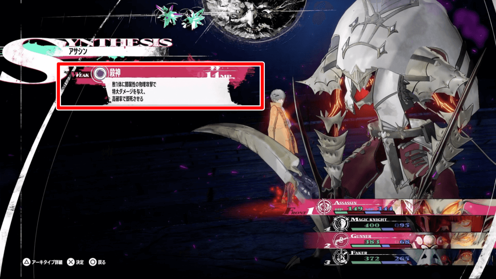 | ジンテーゼ「殺神」で大ダメージを与える |