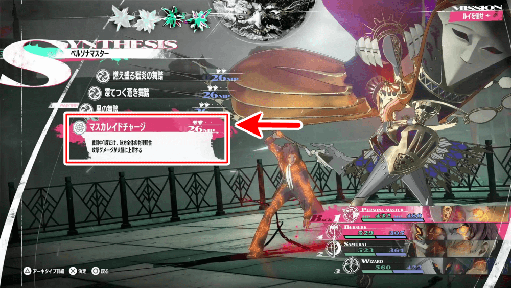 | マスカレイドチャージの効果と習得アーキタイプ |