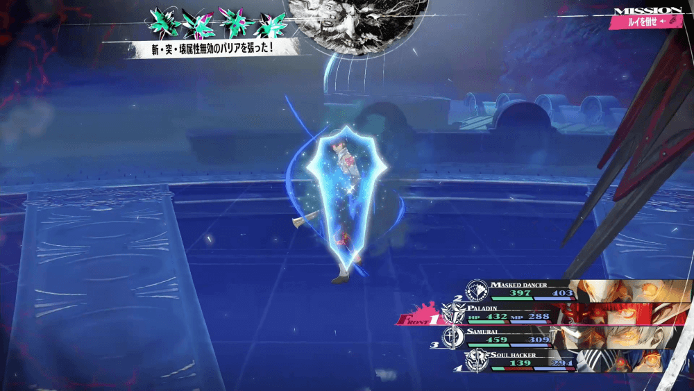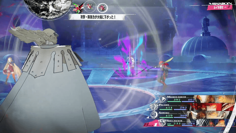 ルイは毎ターン3回行動で、斬属性の単体攻撃と攻防弱体付与を行なってくる。攻撃も弱体付与も単体なので、1ターンでパーティが壊滅する心配はないが、ダメージが偏りやすい点には注意。