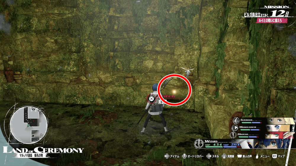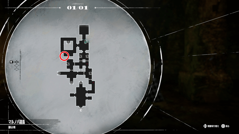 マップ 外観 儀礼の地を進み、道中の宝箱からニューラスの遺物「苔で覆われた円柱」を入手しよう。遺物は、儀礼の地地下1階の西側にある宝箱から入手できる。