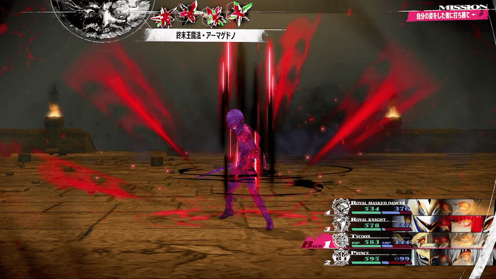 3回目の君主の元型に切り替わると、全体に万能属性で9,999ダメージを与える「終末王魔法・アーマゲドノ」を使用する。3回目の君主の元型に切り替わるまでに、 全ての人の魂を喰らう者を必ず撃破しよう。